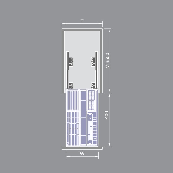 – Standard: 250 (W) × 450 (H) × 450 (D)