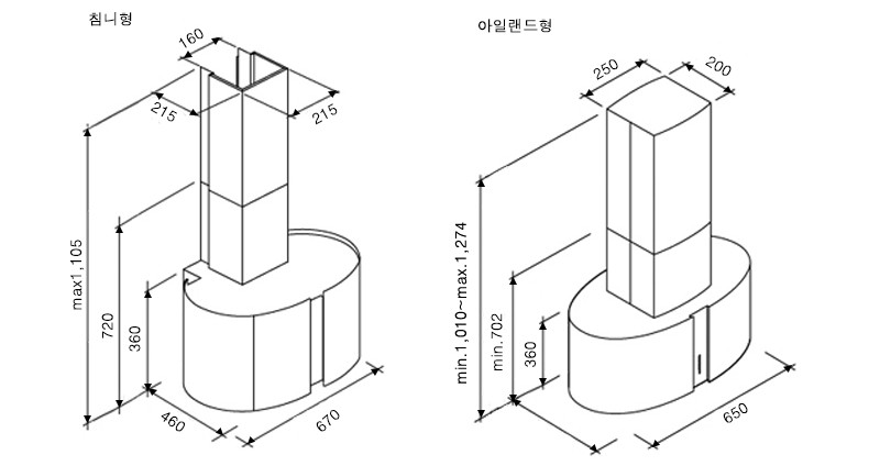 - Standard: 670(W)x460(D)x1,105(H)